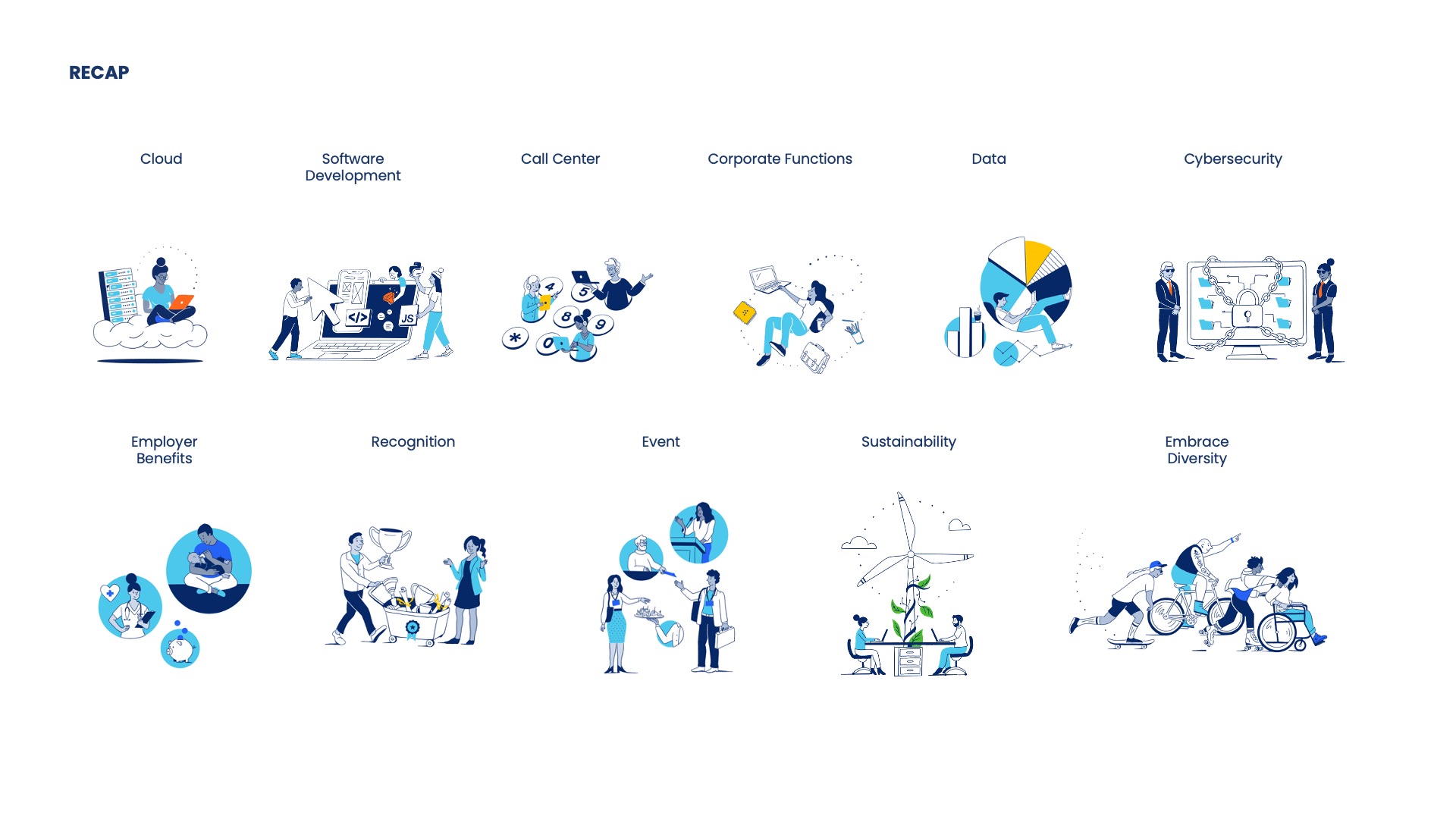 MassMutual went through a brand refresh where a few new colors and patterns were introduced as well as an entirely new illustration style. Previously the brand relied heavily on photography and video, with some abstract art elements and some basic iconography. Now they were introducing an illustration style for use in both print and video. Below you can see some selections from the deck provided by TWA, a Boston design agency who worked with MassMutual's in house team to create these illustrations.
